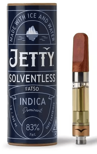 A 2022 Emerald Cup winner, Jetty Extracts solventless 510 cartridge provides a premium experience which fetches an equally premium price. Expect full terpenes with smooth vapor quality, from an exceptional wooden mouthpiece. At 83% THC, this indica dominant strain, aptly named “Fatso”, will give even the most high tolerant user a grand psychoactive experience.